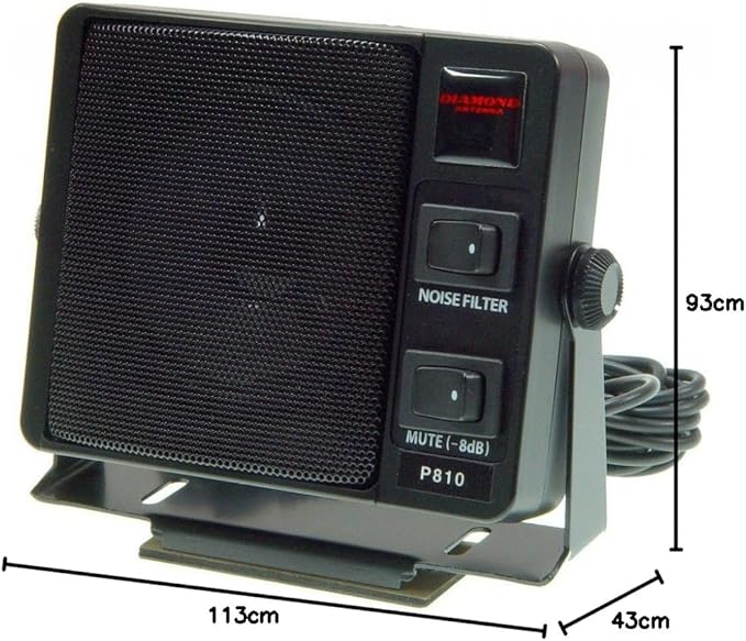 ノイズフィルタースイッチ付 ミュートスイッチ付(-8dB) スピーカー:77mm/8Ω マグネットブラケット付 最大入力:6W 寸法:113W 93H 43Dmm