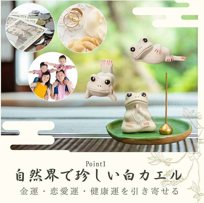 【お部屋をパワースポットに】白カエルは自然界ではとても珍しく、縁起物としても知られています。お気に入りの場所において、健康運・金運・恋愛運アップ!お部屋をパワースポットにしちゃいましょう♪