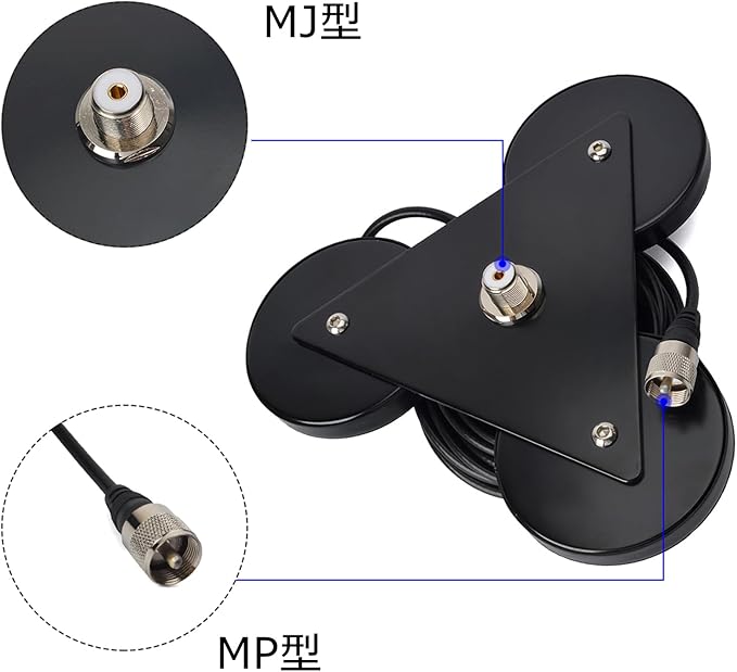 【強力アンテナ基台】直径φ90mmのマグネットを3個使用した、強力マグネットベースです。走行中の振動に強くて揺れにくいです。