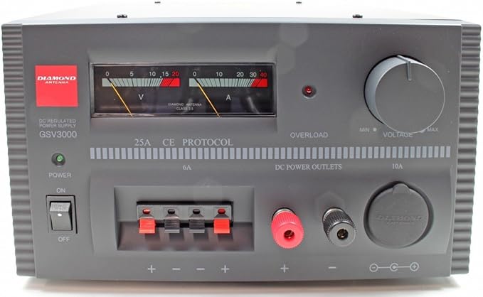入力電源:AC100V(50,60Hz) 出力電圧:DC1~15V可変 連続最大出力(13.8V時):連続30A(13.8V時) 8時間断続34A(1分送信、1分受信) 放熱方式:温度感応式強制空冷ファン付 寸法(突起物を含まず):250W 150H 240Dmm●重量:約9kg