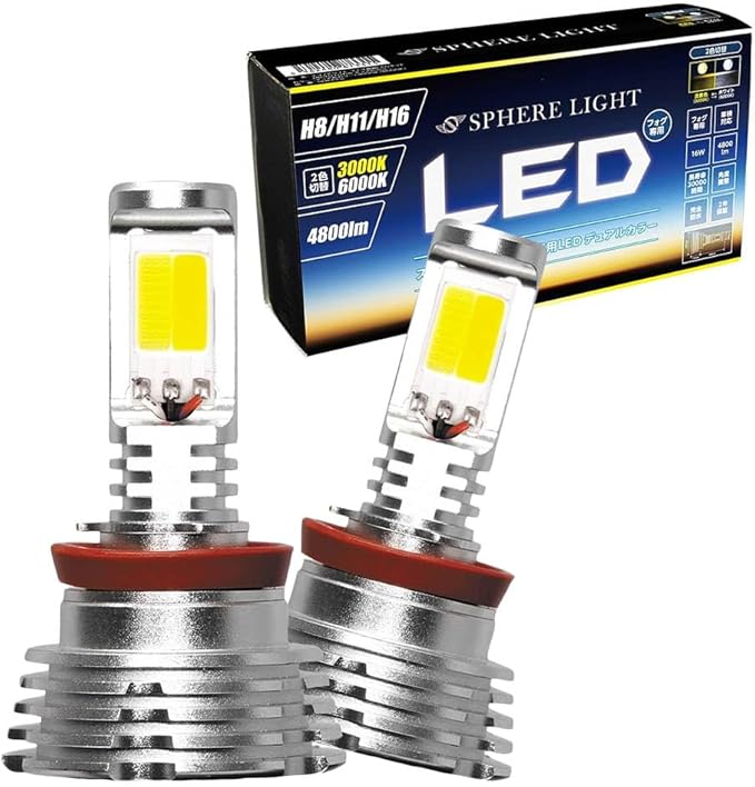 スフィアライト H8 H11 H16 フォグランプ LED バルブ 2色切り替え 6000K ⇄ 3000K 車検対応 4800lm 12V ファンレス 簡単取付 ノイズ対策 防水 防塵 角度調整 デュアルカラー ホワイト ⇄ イエロー 補助灯 SPHERELIGHT SHKPE2 | KAZESHOP
