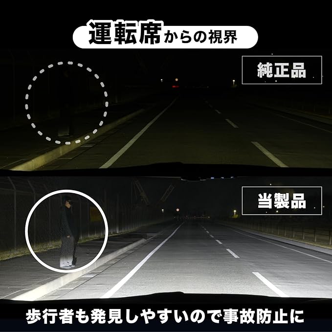 【独自チップ 配光設計】 路面中心から路肩までムラを抑えた配光で、悪天候でも見やすく障害物発見をより早く可能にし、事故回避に貢献できるバルブです。