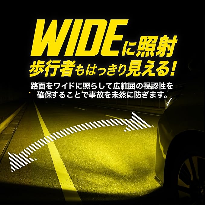 【実測値16000lmの黄色光】ヴェレーノアルティメットシリーズの発光力と配光で 夜間・雨天・霧でも路面をワイドに明るく。高出力LEDフォグランプ、ヘッドライトで夜間の視界確保と見えやすさで運転が楽に
