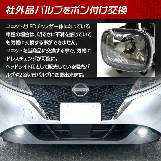 【対応車種】◆ノート E13・AUTECH 令和2年12月~│フォグランプ装着車に適合 ◆キックス 令和2年 6月~│全グレードに適合 ◆X-TRAIL T33 令和4年7月~│Gグレード/G e-4ORCEグレードに適合 ※上記以外のグレードは取り付け形状が異なります。