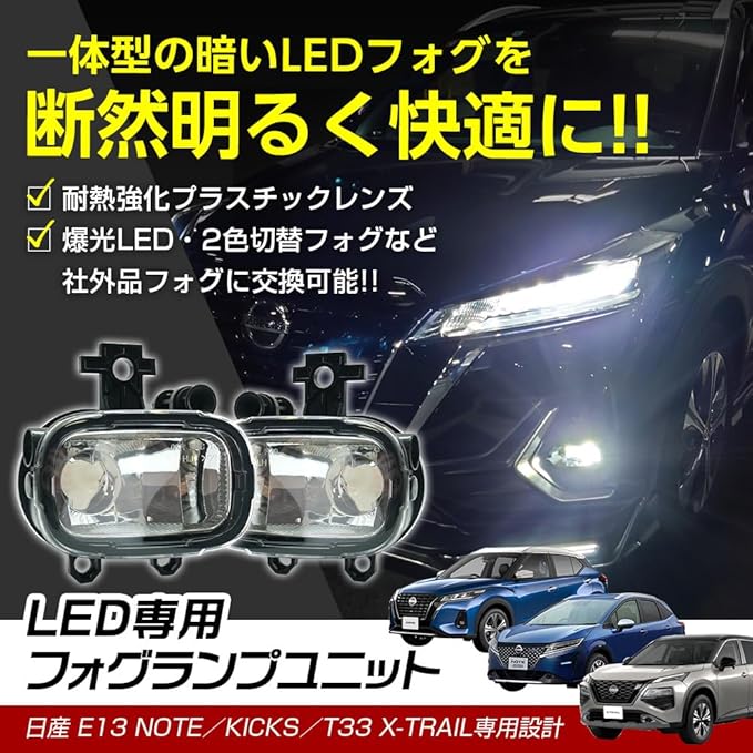 ノート E13 キックス エクストレイル T33 フォグランプ 後付け ユニット 交換用 光軸調整付き LED H11 フォグ フォグユニット 純正LEDフォグを社外品に【YP】 | KAZESHOP
