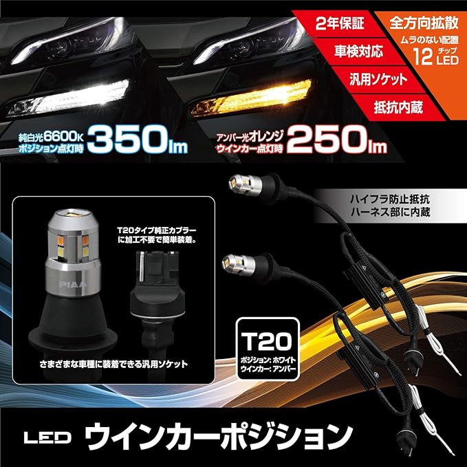 PIAA(ピア) ウインカー/ポジション用 LEDバルブ 6600K 車検対応 250lm/350lm S25 12V用 抵抗付オールインワンキット 安心のメーカー保証2年付 2個入 LEWP2 | KAZESHOP
