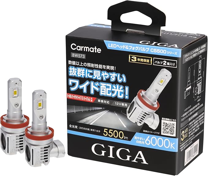 カーメイト(CARMATE) GIGA 車用LED ヘッド&フォグバルブ C5500 シリーズ 6000K H8/H9/H11/H16 5500lm 見やすいワイド配光 BW573 | KAZESHOP