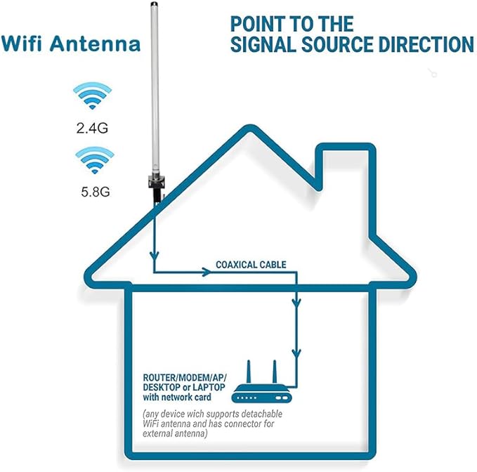 使用スキル:すべてのアンテナは周囲に大きく依存しています。これは、WiFiレセプションのためにより最適な位置に配置できるオムニ方向アンテナです。 ソースから信号をブロックしている可能性のあるオブジェクト(壁、木、コンクリートなど)からアンテナをさらに外に移動することにより、WiFi信号の範囲を拡張します。