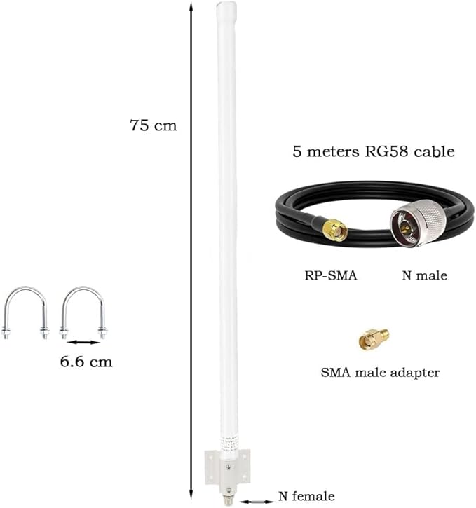 コネクタ:端にn男性が付いたケーブル(このアンテナ用)。 ワイヤーのもう一方の端にあるコネクタのタイプはRP-SMAメス(デバイス用)です。パッケージにはRP-SMA男性からSMA男性アダプターが含まれています。デバイスがSMAコネクタの場合は使用できます。