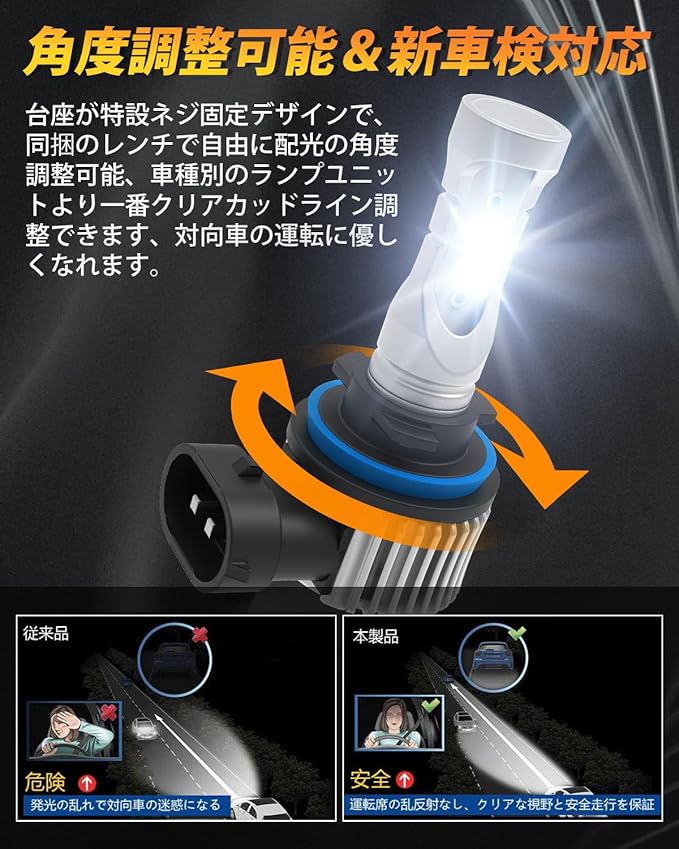 【2023爆光モデル&ノイズ防止 】夜道暗くて、運転危なかった?カッドラインは出てず、車検通らなかった?サイズが合わない、取り付けできなかった? BORDAN h11 led フォグランプは従来品より、明るさ300%アップします。プラスチック製コンセント部分の硬化材料を採用したので、取り付ける時の破損に心配なし!スイッチを繰り返すだけでホワイトとレモンイエローに切り替えます。6000kのホワイトは晴れや曇りの日に最適、4600kのレモンイエローは雨や雪の日に適してます。 天候や気分に応じて簡単に色味を変更できる!BORDAN H8 LED フォグ 爆光は両面抜群の視認性の高品質のCSP1860チップを採用しています、一つのバルブ合計16SMDで、ハロゲンより大幅に視認性を高めています。夜間の走行が非常に楽になり、安全に運転しています!ノイズ防止キャンセラーが内蔵して、迷惑なラジオのノイズはありません。安心・安全なカーライフを送りましょう!