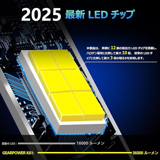 [ハロゲンより700%明るい] GEARPOWER 2025 H11 LEDヘッドライトは、ハロゲンより700%明るい印象的な明るさで、12個の高出力両面チップを介して驚異的な30000LM出力を実現します。その結果、クリアでクールなホワイト6500Kの光が優れた視認性を実現します。互換性が高くなるように設計されているため、オリジナルのH11 / H9 / H8ソケットに最適です。