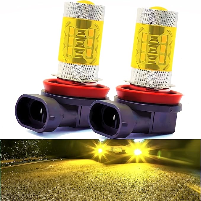H8 H11 H16 フォグランプ 高輝度LED 車検対応 防水 爆光 無音 単色特化 2400LM イエロー 3500K 12V V24対応 70W 乗用車/トラック 汎用 2個入り (イエロー, H8/H11/H16) | KAZESHOP