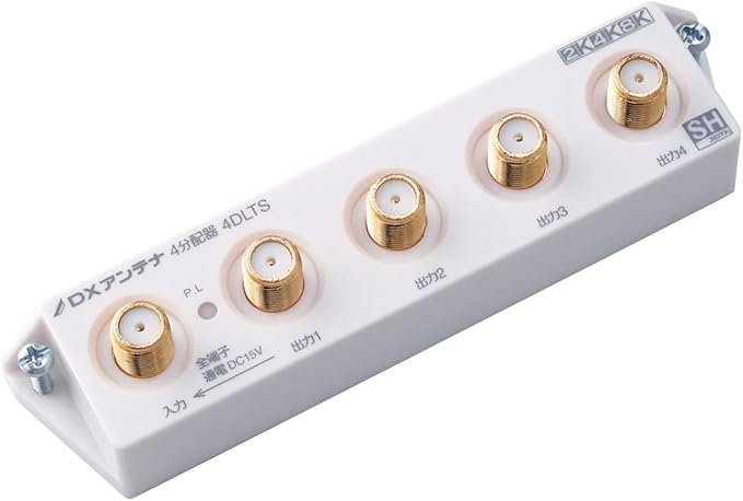 新4K8K衛星放送に対応した4分配器です。地デジ、CS・BSデジタル放送に最適です。 入力出力端子(F形コネクタ)を一列に並べたスリム形です。テレビやレコーダーへの接続は別売の同軸ケーブルを使用します。