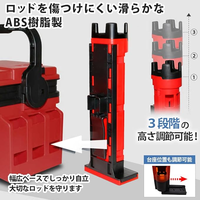 【材質:美しさと耐久性を両立した高強度ABS樹脂】 本体には、軽量でありながら優れた耐衝撃性を持つ高強度のABS樹脂を採用しました。透明度の高い素材は、光の当たり方によって様々な表情を見せ、オブジェとしての存在感を高めます。また、ロッドを差し込む部分は滑らかに仕上げられており、大切な愛竿のグリップやブランクスを傷つける心配がありません。万が一汚れてもサッと拭き取れるため、メンテナンスも簡単。長く美しい状態を保ちながらご愛用いただけます。