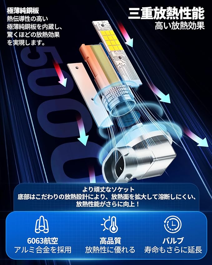 【優れた熱伝導性&より長持ち】優れた放熱システム!H11 H8 H16 LED フォグランプは、6063航空アルミニウムケースを採用し、内部には放熱板と溝設計があり、効果的な放熱性能を実現しており、50000時間の寿命を実現しています。プロフェッショナルな熱画像検査により、優れた温度制御機能を備えて、長期間の使用でも過熱の心配がありません。より効率的なエネルギー利用が可能で、LED電球の寿命を延ばし、車両の燃費を向上させることができます。