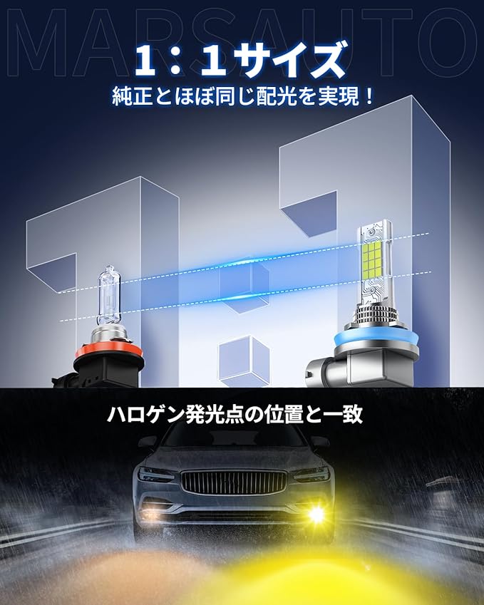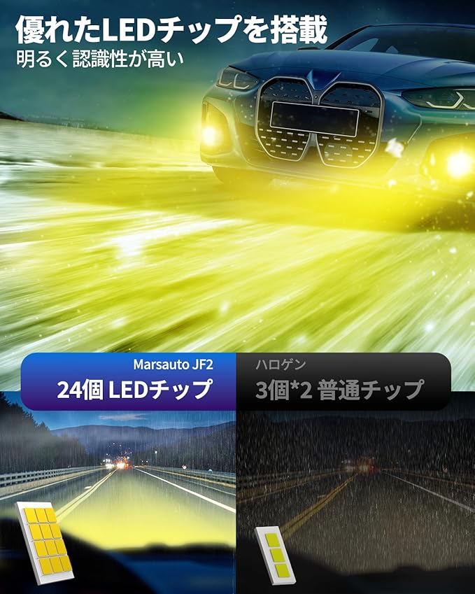 Marsauto h11 led フォグランプ 爆光 H8 led フォグ イェロー 車検対応 10000LM フォグランプ LED H8 H11 H16 バルブ IP68防水防結露 キャンセラー内蔵 0.1s瞬間起動 ledフォグライト 3000K 24連 LEDチップ搭載 DC12V対応 50000時間以上寿命 黄色 2個セット 2年保証(JF2シリーズ) | KAZESHOP