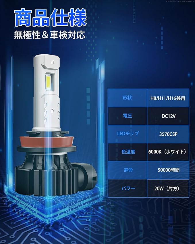 「配光抜群 h11 led フォグランプ」本製品 H8 led フォグ ホワイト は高輝度CSPチップ搭載して、フォグランプとして安定性が強い、環境に優しくて、長寿命・高輝度の明るさを実現。h11 led フォグ ホワイト で山岳地帯の連続カーブでは路面を昼間のように照らし、雨や霧、雪などの悪天候にしても良い視野を提供します。また、ハロゲンバルブを忠実にLEDで再現し、発光が純正より何倍以上アップした上で、正確な配光を実現している為、対向車に迷惑をかけません。※ご注意:弊社が販売している製品は全て汎用品で、また、車検に関しては、地域により検査員の基準が異なる場合がございます。 全てのヘッドライトは必ず車検を通過できるとお約束できかねます