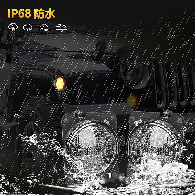 ラングラー JK バンパーフォグランプ フロント ターンシグナルライト LED フロント グリル インジケーター ライト 警告灯 補助灯 省エネ、長寿命、防水 12V/24V ラングラー JK 2007-2017 に適用(イエロー) | KAZESHOP