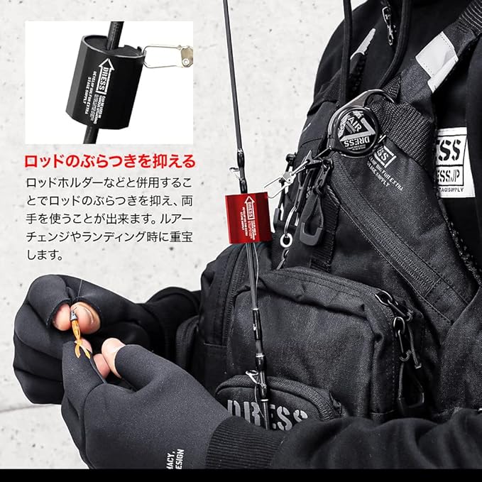 各種ゲームベストやバッグ等に簡単に取付ける事ができ、ルアーチェンジやランディング時に重宝します。
