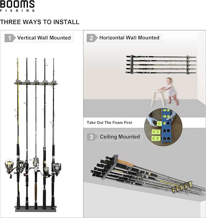 booms fishing ロッドスタンド壁掛式のホルダー部分はロッドを傷つけないEVA製フォームパッドとなり、ロッドをしっかり挟みます。