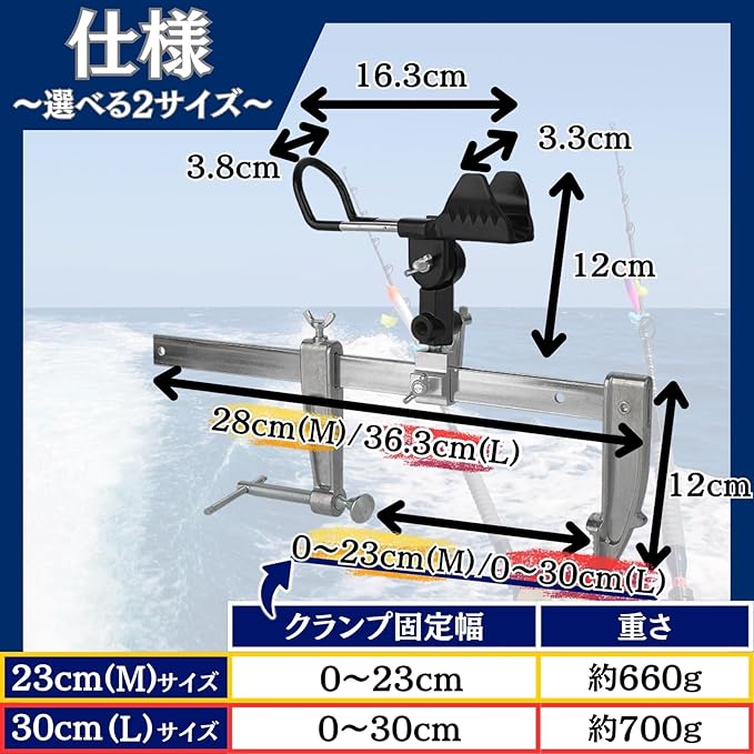 ✅ 【クランプ式で簡単しっかり固定】最大23cm/30cmまで対応するクランプ式で、船の手すりや堤防の柵にしっかり固定可能。設置は工具不要でラクラク。釣行時のセッティングもスムーズです。