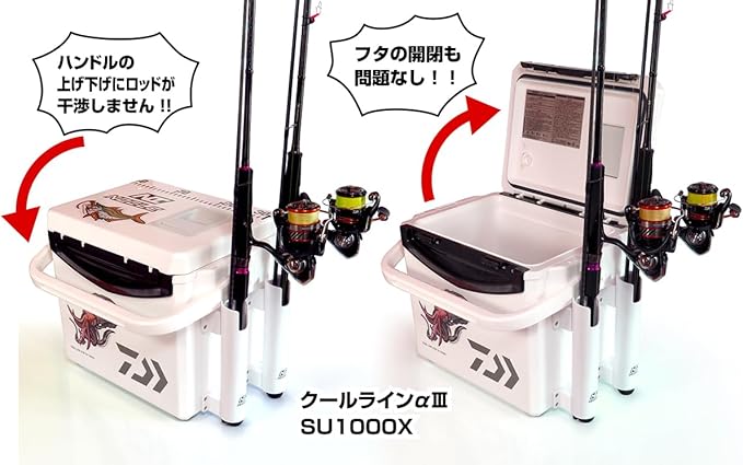 クーラーボックスのハンドル、ロッドの干渉がありません。