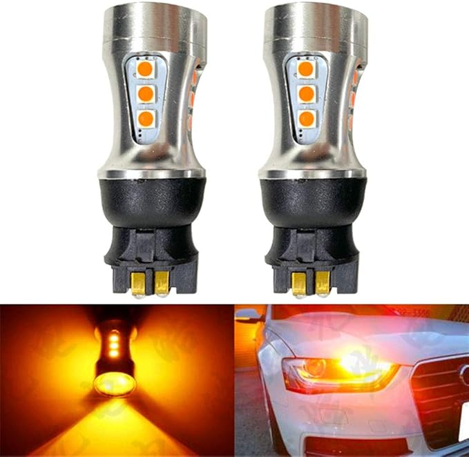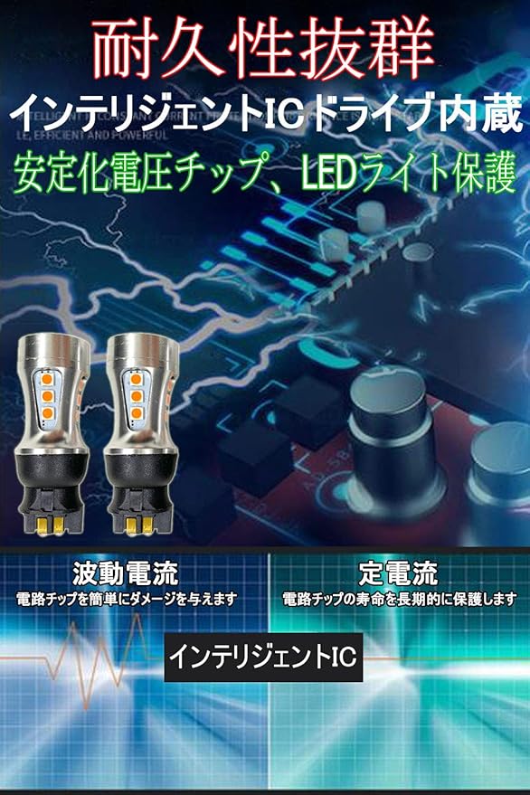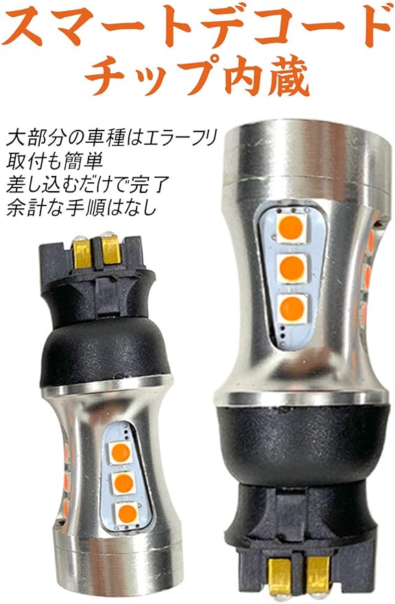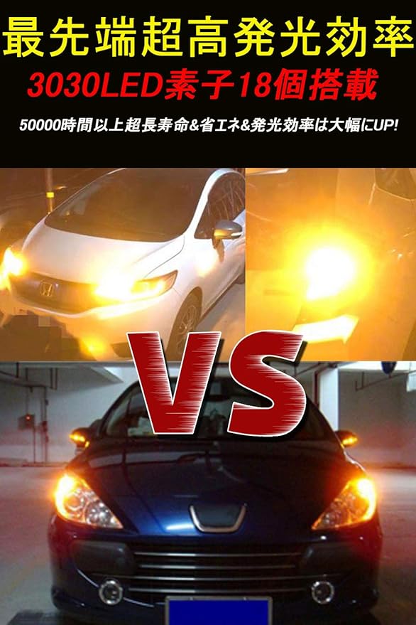 超高輝度、省エネ:このpw24w led アンバーは高発光効率のSMD3030 高輝度チップを採用し、市販品(PW24W)のハロゲン(パワー:8W)に1.5wの消費電力だけで、従来品を遥かに凌ぐ200LM明るさを実現します。純正バルブと比較して、最大で約4倍の明るさUPが可能になります。