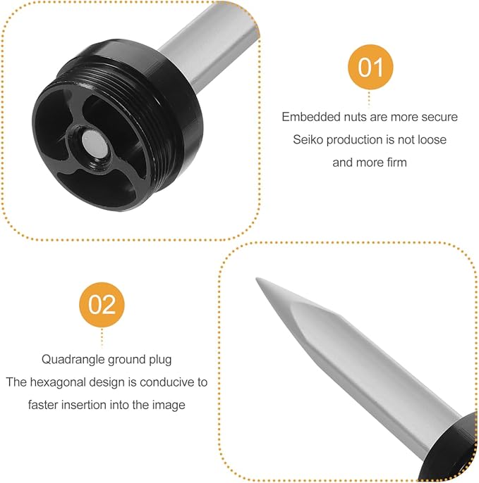 - 使用時にはテーパー形状のドリルロッドを外側に接続し、保管時にはテーパー形状のドリルロッドを内側に接続して、スペースを節約する金属ポールベース。
