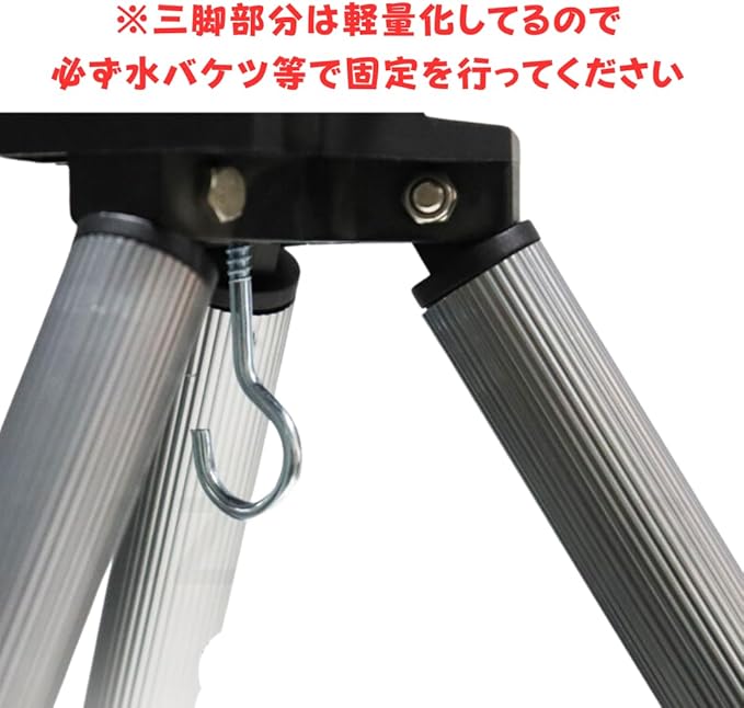 ※三脚は安定させるために必ず水の入ったバケツ等のオモリを吊り下げてご使用ください