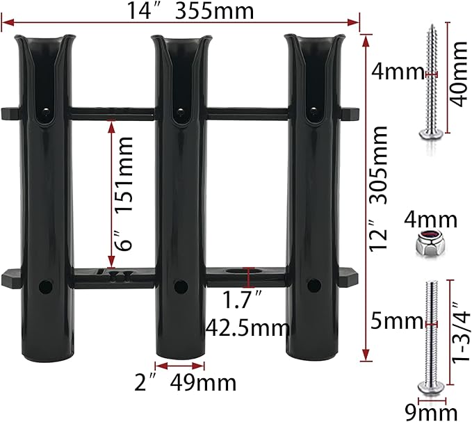 ISURE MARINE ボート ブラック 3ポール サイドマウント ロッドホルダー ブラケット 釣りツールホルダー チューブ 3ロッドラック プラスチック PP ネジ付き サイドマウント | KAZESHOP