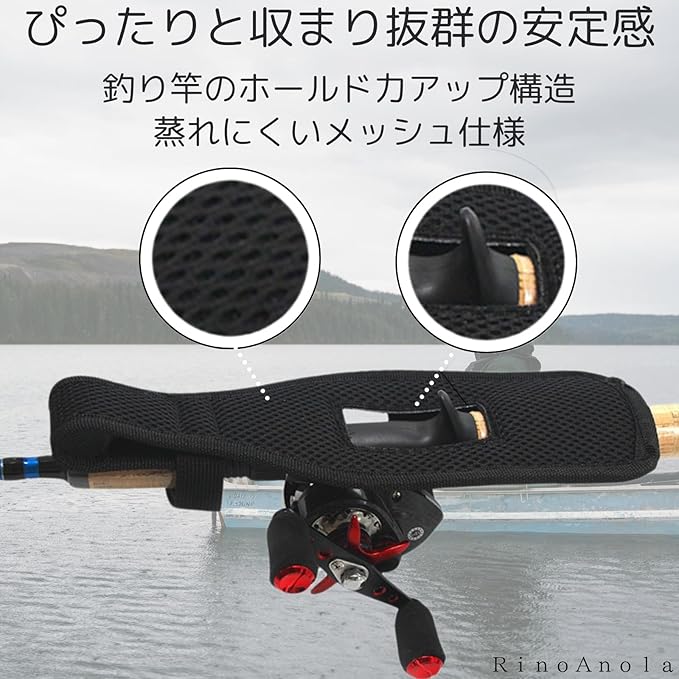 ✅リールに合わせるための溝やロッドを固定用のマジックテープがあるため安心して竿やタモをホールドしてくれます