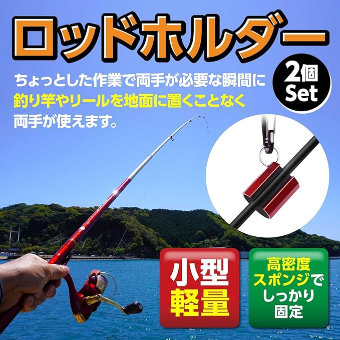 ✅【腰ベルト等に装着できるロッドホルダー】カラビナ付きで腰ベルト等に取付できるロッドホルダー2個セットです。ロッドを地面に置くことなく両手が使えるようになり、釣りの時間を楽しく過ごせる竿受け便利グッズです。