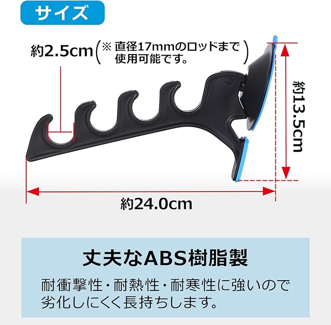 【強力な吸着力】ブラケット 吸盤で、安定した取り付け。最大5kgの耐荷重。直径17㎜までのロッドに対応。