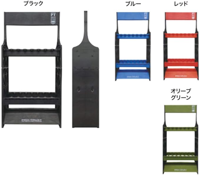 3色のカラーラインナップでアイテム別・魚種別でも管理できる。組み立て簡単。プラスドライバーでOK。合計16本収納可能。