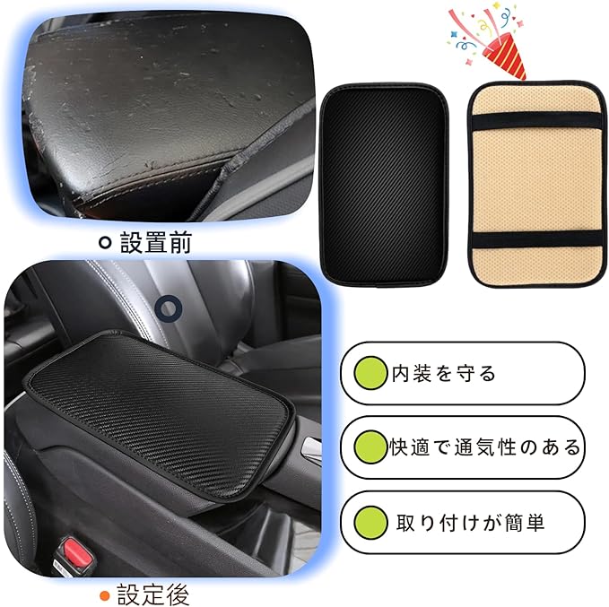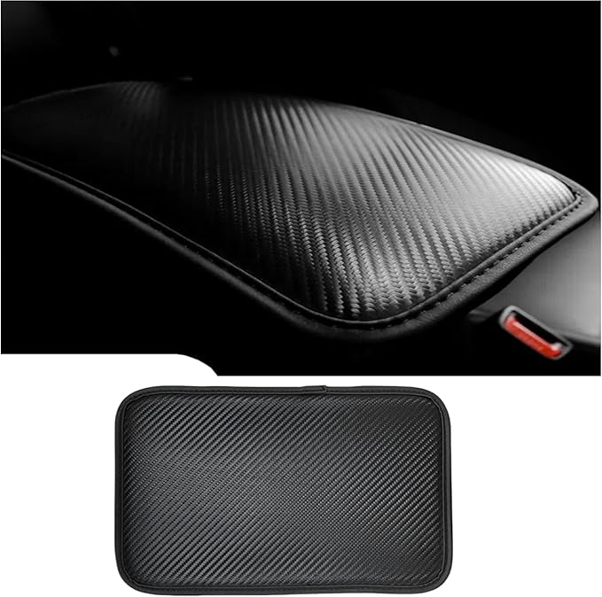 カーアームレストカバー 車用 肘置き アームレストパッド 車 アームレストクッション 簡単取付 コンソールボックスパッド アクセサリー 汎用 収納ボックスカバー カー用品 カーボンファイバーブラック | KAZESHOP