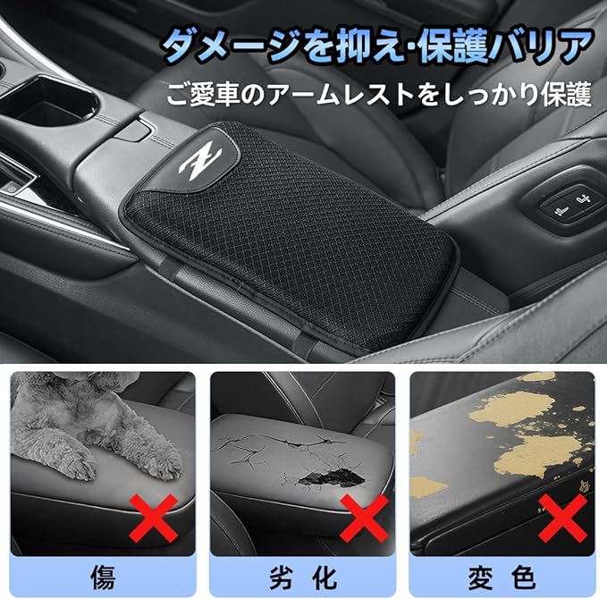 フェアレディZ 適用 アームレストカバー 車 厚型 保護カバー FAIRLADY Z RZ34系 Z33系 ニスモ 対応 引っかき傷対策 アームレストクッション アイスシルク生地 通気性 カー アームレストパッド 肘置き 疲労減少 コンソールボックスパッド 滑り止め 簡単取付(フェアレディZ 適用) | KAZESHOP