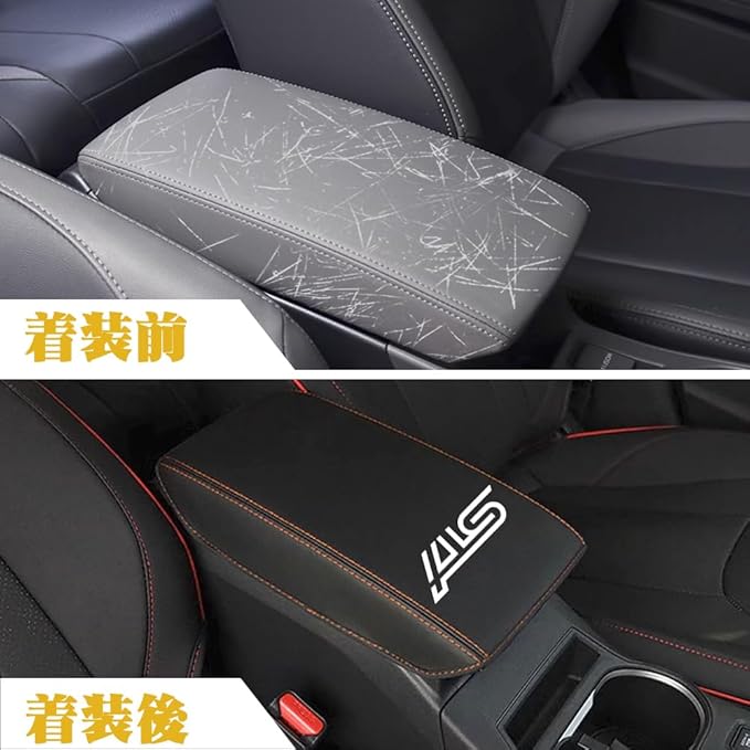 スバル レヴォーグ VN系 クロストレック GU系 インプレッサ GU系 XV GT系 専用 レザーアームレストカバー センター コンソールボックス カバー 傷 汚れ防止 被せるだけパーツ 内装 カスタム アクセサリー ドレスアップ パーツ (ブラック&オレンジステッチ) | KAZESHOP
