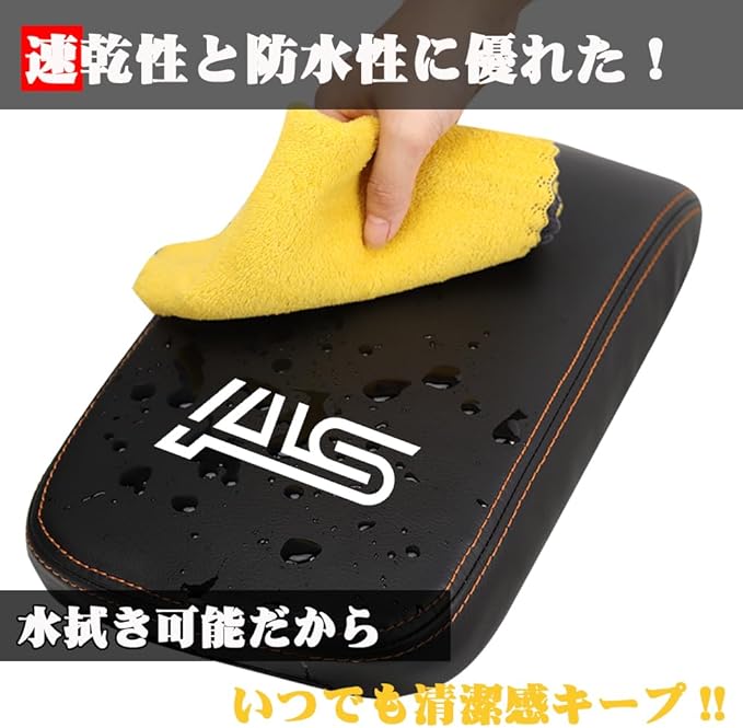 【材質】:より良い感触のためにPUレザーが採用しています。異臭もない、柔らかで使い心地が良い、擦り傷に強いです。耐摩耗性、耐水、汗を吸い取る機能もあります。センター コンソールボックスは肘置きとしても大変便利ですので、使用頻度の高い箇所は変色、汗染みなどになりやすいですが、本製品を装着することによって、経年劣化やダメージを軽減します。普段の使う時だけではなく、ペットによる汚れ、傷防止にも役立ちます。
