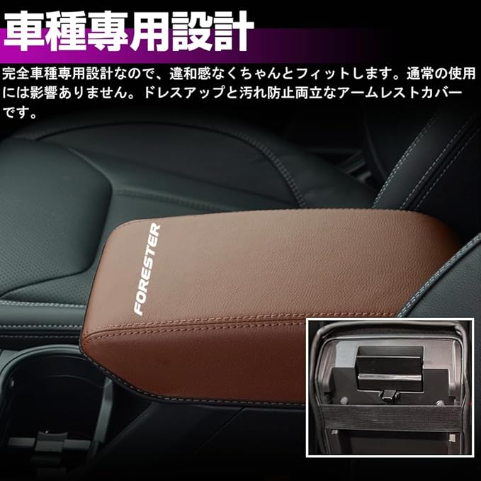 スバル フォレスター SL系 専用 レザーアームレストカバー FORESTER センター コンソールボックス カバー 傷 汚れ防止 被せるだけパーツ 内装 カスタム アクセサリー ドレスアップ パーツ (ブラウン&ブラウンステッチ) | KAZESHOP