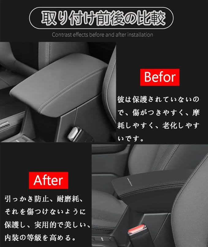 【高品質素材】: ★本製品は高品質のレザー材質を採用して、手触りが快適で、発 汗通気性があり、耐摩耗性、柔軟性、美観が実用的である。 【製品の特徴】: ★使用頻度高いアームレストに爪などによる傷をもっと防止できます、アームレストを守ることができます、細部まで上級仕様を実感できます。 ★おしゃれな色調で上質感がグットアップ!車の高級感を損なわなく、内装の雰囲気とマッチします、お手軽いに想像以上のドレスアップ効果をもたらします。お好みのカラーをご自由に選んでください。 【取り付けが簡単】: ゴムバンドでのデザインです、エッジもゴムバンドで良い処理になります。アームレストを立てた状態で上から被せて、気長に下に引っ張りながら微調整してください。 【製品の内容】: アームレストカバー1P 【注意事項】: 購入時は車種を確認してください。