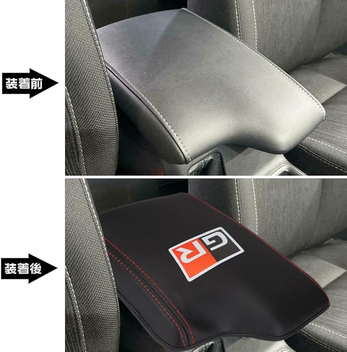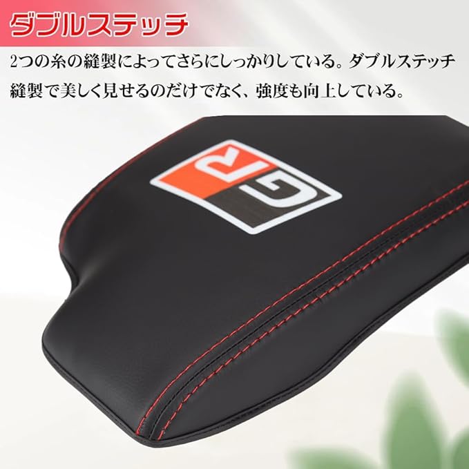 トヨタ ハイラックス GUN125系 専用設計 コンソールボックスカバー アームレストボックス アクセサリー カスタム パーツ GR ロゴ付 ドレスアップ 内装 汚れ防止 引っかき傷対策(レッドステッチ) | KAZESHOP