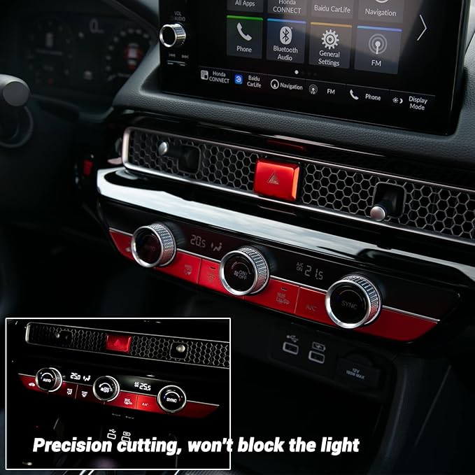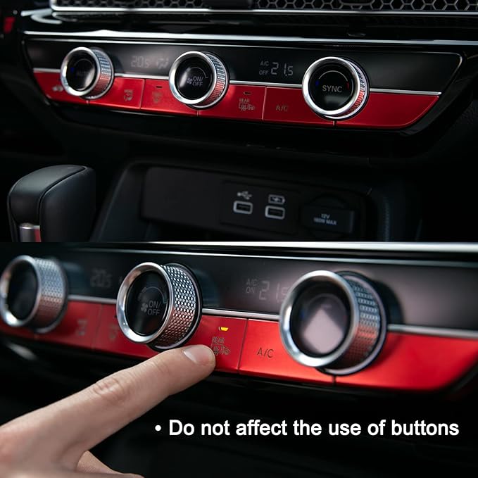 Thenice 第11世代シビックセンターコンソールパネルA/Cコントロールボタンカバートリム 6個 アルミニウム合金インテリアデコレーション ホンダ シビック 2022 2023 2024 セダン ハッチバック EX EX-L ツーリング用 -レッド | KAZESHOP