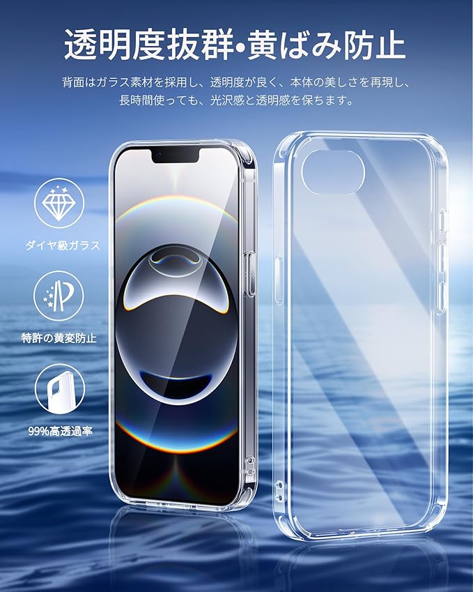 【2025最新改良・黄変防止強化】本製品の背面素材はガラスで、その特性により黄ばみが起こりません。さらに、AF防指紋コーティングを施しているため、指紋や汚れがつきにくく、サッと拭くだけで簡単にきれいになります。ケースを使いやすく、清潔に保つことができます。また側面には、ドイツ製バイエルTPU素材を採用し、TPUポリマーにUV剤を添加して黄変防止性能を高めています。長時間使用しても、光沢と透明感を維持します。