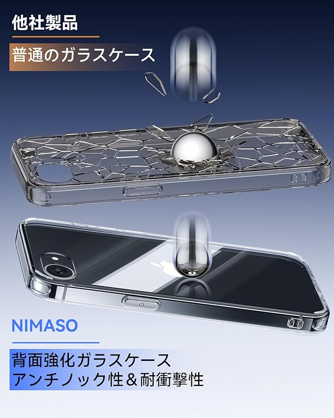 NIMASO iPhone 16e 用 クリア ケース 透明 背面 強化ガラス 9H硬度 米軍MIL規格 SGS認証 傷つけ防止 薄型 バンパー 黄変防止 ワイヤレス充電対応 ストラップホール付き アイフォン 16e 対応 (6.1 インチ) スマホケース(氷晶シリーズ)NSC24L1559 | KAZESHOP