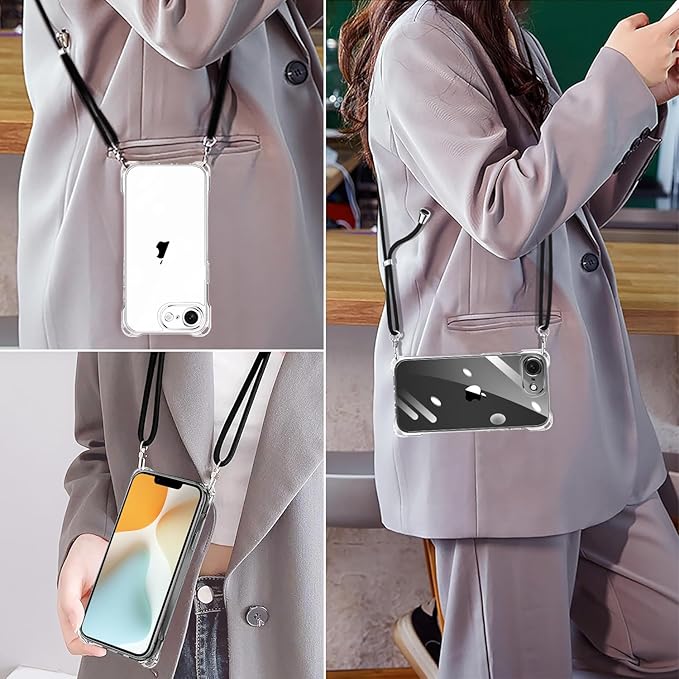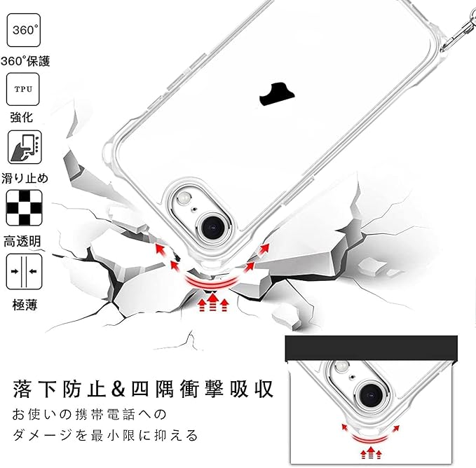 iPhone 16E 用 ケース クリア ショルダー ネック ストラップ付き 耐衝撃 全面保護 アイフォン16E スマホケース 縄掛けケース iPhone 16e カバー 薄型 軽量 シリコン TPU 紐付き 斜めがけ 取り外し可能 落下防止 紛失防止【透明】 | KAZESHOP