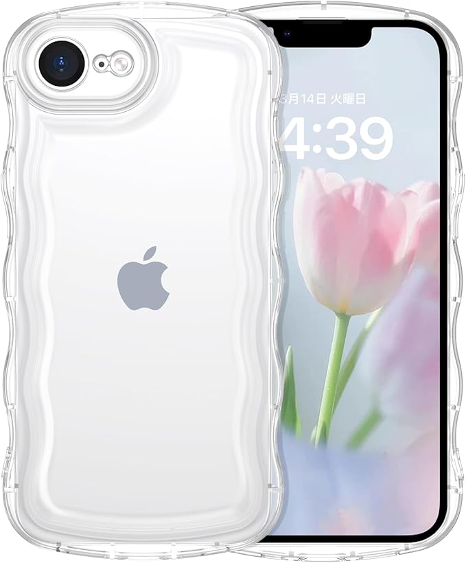 VENINGO iPhone 16e ケース クリア ウェーブ おしゃれ TPU+PC 韓国 かわいい 可愛い スマホケース 【アクスタが入る】人気 シンプル 滑り止め 薄型 軽量 耐衝撃 指紋防止 レンズ保護 ストラップホール付き シリコン TPU バンパー いPhone16e用ケース6.1インチ 透明 | KAZESHOP