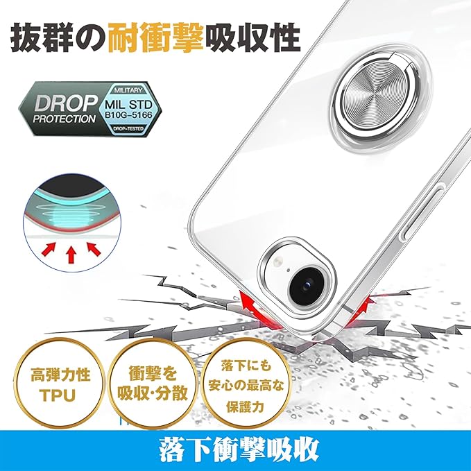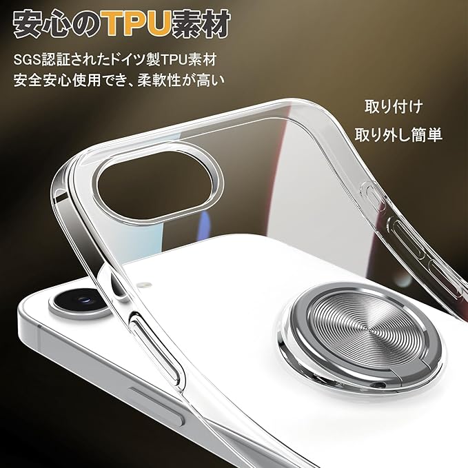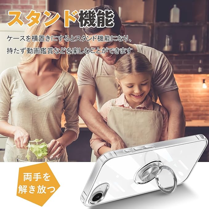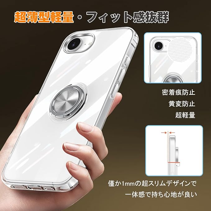 iPhone 16e 用 ケース クリア リング付き いphone16e カバー 透明 おしゃれ OURJOY スマホケース メッキ加工 ソフトケース 耐衝撃 軽量 薄型 ストラップホール付き スタンド機能 車載ホルダー対応 アイフォン 16e 携帯ケース・クリア | KAZESHOP