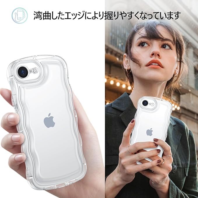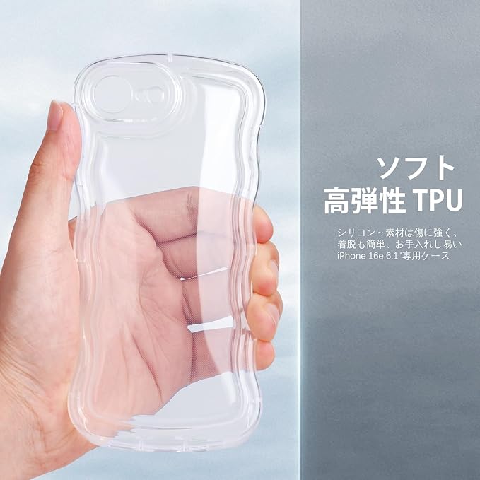 ♥【ウェーブ湾曲縁&TPU肌触り】湾曲したエッジにより握りやすくなっています。アイフォン いPhone 16e透明ケースは滑らかな液体シリコンゴムと柔らかいTPU製で、耐傷性、耐指紋性、耐衝撃性に優れ、取り外しも簡単,お手入れし易い。