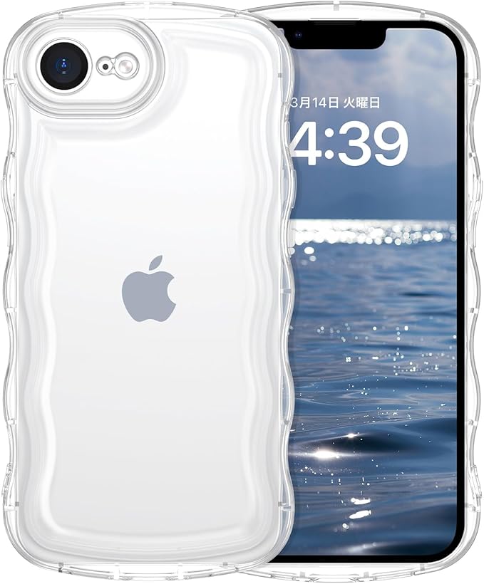GUAGUA いphone 16e ケース クリア ウェーブ iPhoneSE4 ソフト TPU 透明 ケース うねうね 人気 バンパー 耐衝撃 超軽量 薄型 ワイヤレス充電対応 ストラップホール付き アクスタが入る スマホケース 16e/SE4(2025) 楕円形カメラ アイフォン SE4 16E(2025)6.1インチ なみなみ カバー(クリア 透明) | KAZESHOP