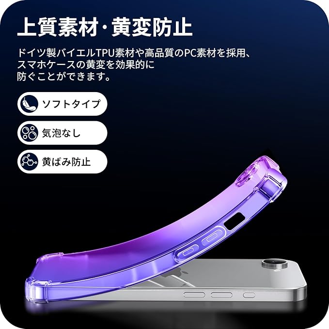 iPhone 16e 用 ケース 耐衝撃 クリア tpu 透明 iPhone 16e 用 カバー クリア スリム 薄型 シリコン 指紋防止 米軍MIL規格取得 iPhone16E 用 カバー 衝撃吸収 滑り止め カメラ保護 携帯カバー ワイヤレス 充電対応 おしゃれ 黄変防止 防塵 携帯カバー 紫+青D543-ipse4-02 | KAZESHOP
